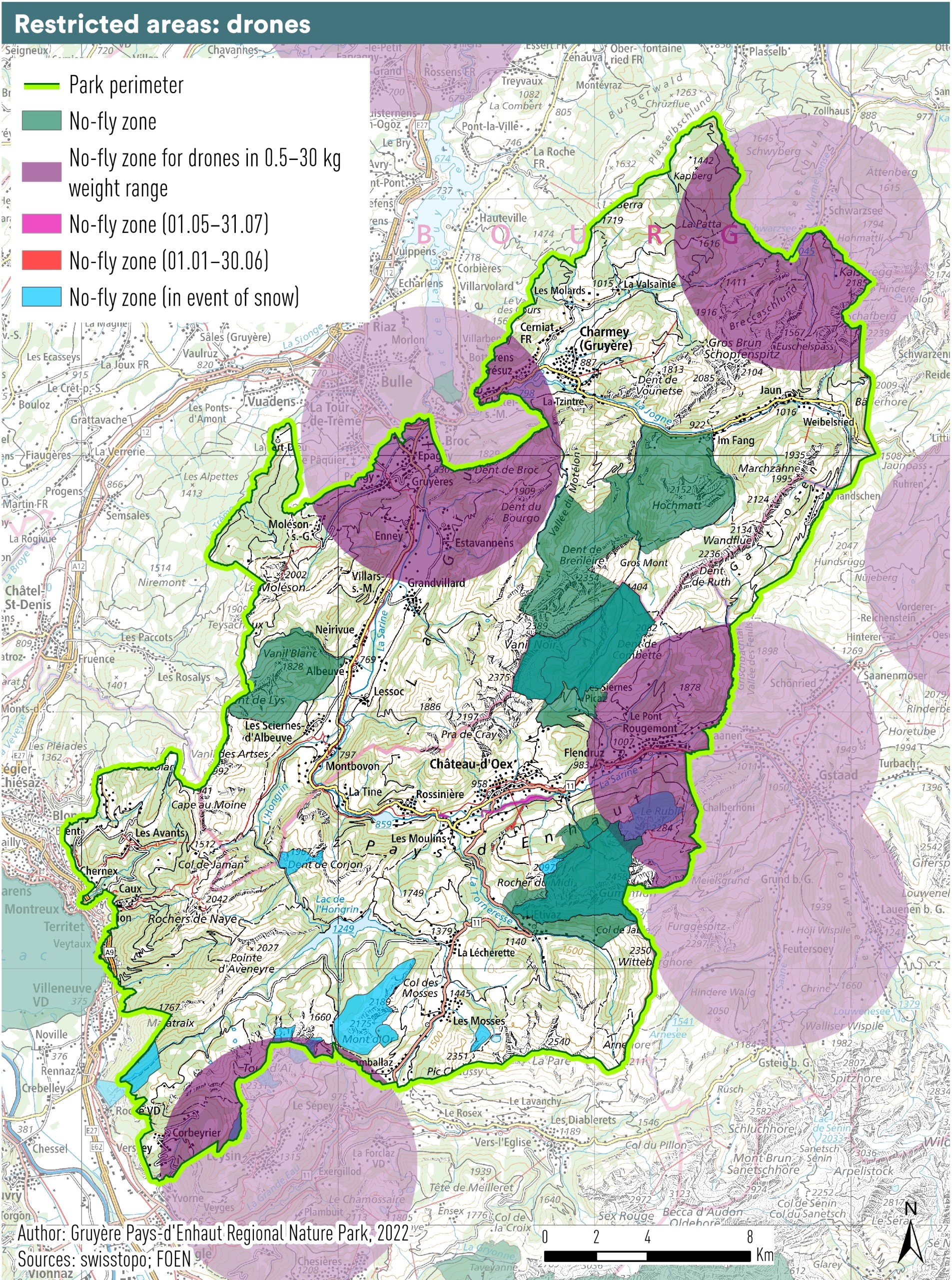 Protected areas and areas where drone use is subject to restrictions are shown on the adjacent map.